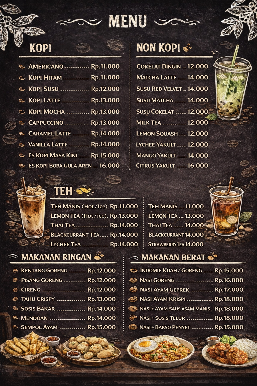 Karena nongkrong enak nggak harus mahal. Kopi lengkap, camilan ada, tempatnya nyaman, cocok buat berlama-lama.